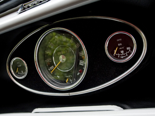 The specification for the mini required it to have a late 1970's feel to the interior, we chose the Momo Prototipo steering wheel in leather with silver detail to match the Italian handmade Nurburgring RS seats, which are black leather with corduroy centres, the rear seat is re-trimmed to match. The polished handles complement the steering wheel while the black flocked dash panel, with matching column surround and switch panel paired with the custom red headlining give a sporty feel, matching the Scalextric image. To finish off the interior, a modern 4 speaker powered stereo is installed, mostly hidden with audiophile sound quality.